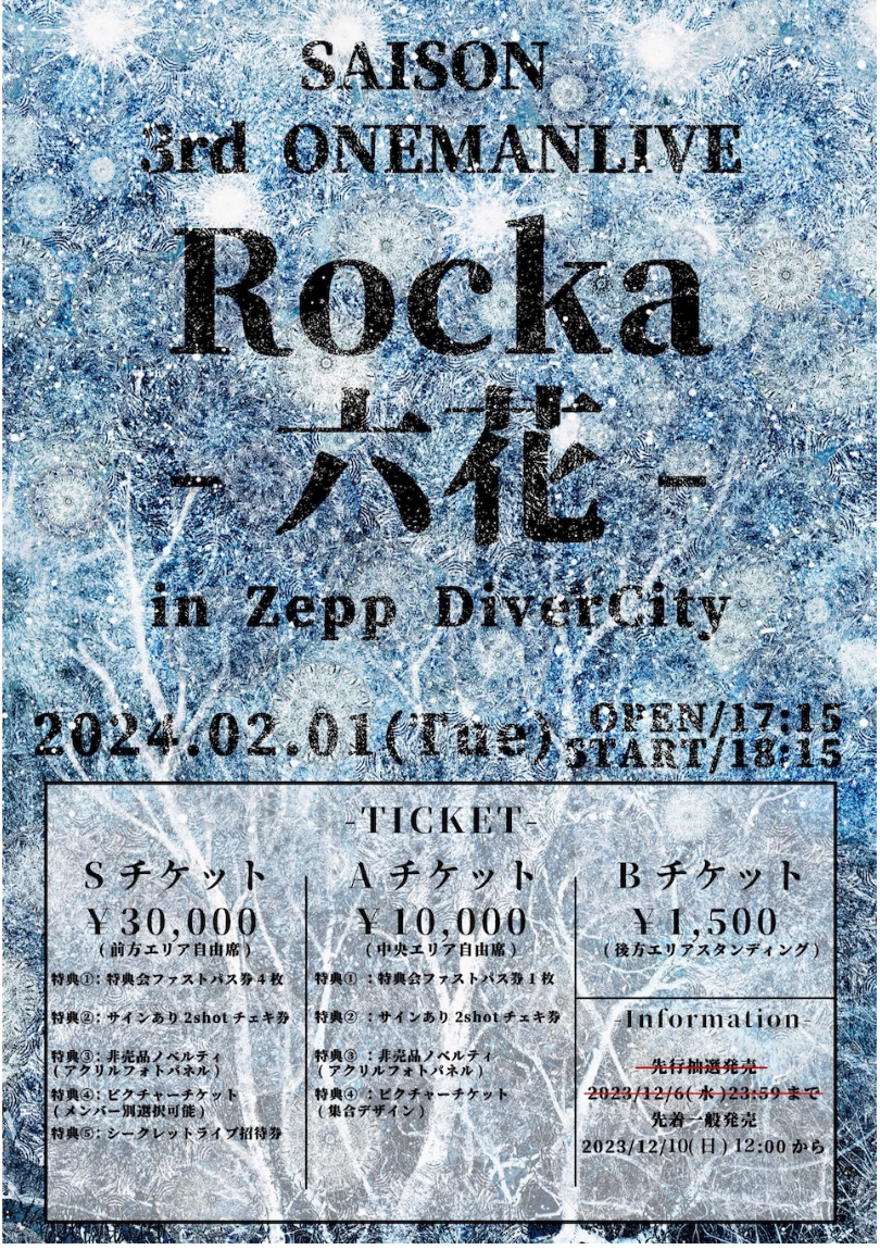 SAISON3rd ONEMANLIVE「Rocka -六花-」開催決定。新体制初のワンマンライブとなります。