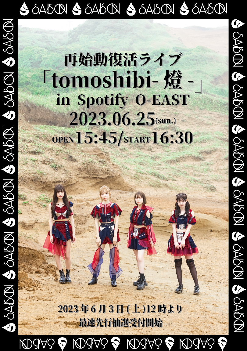 SAISON再始動復活ライブ「tomoshibi-燈-」開催決定。メンバー4名で新たなるSAISONの再出発となります。